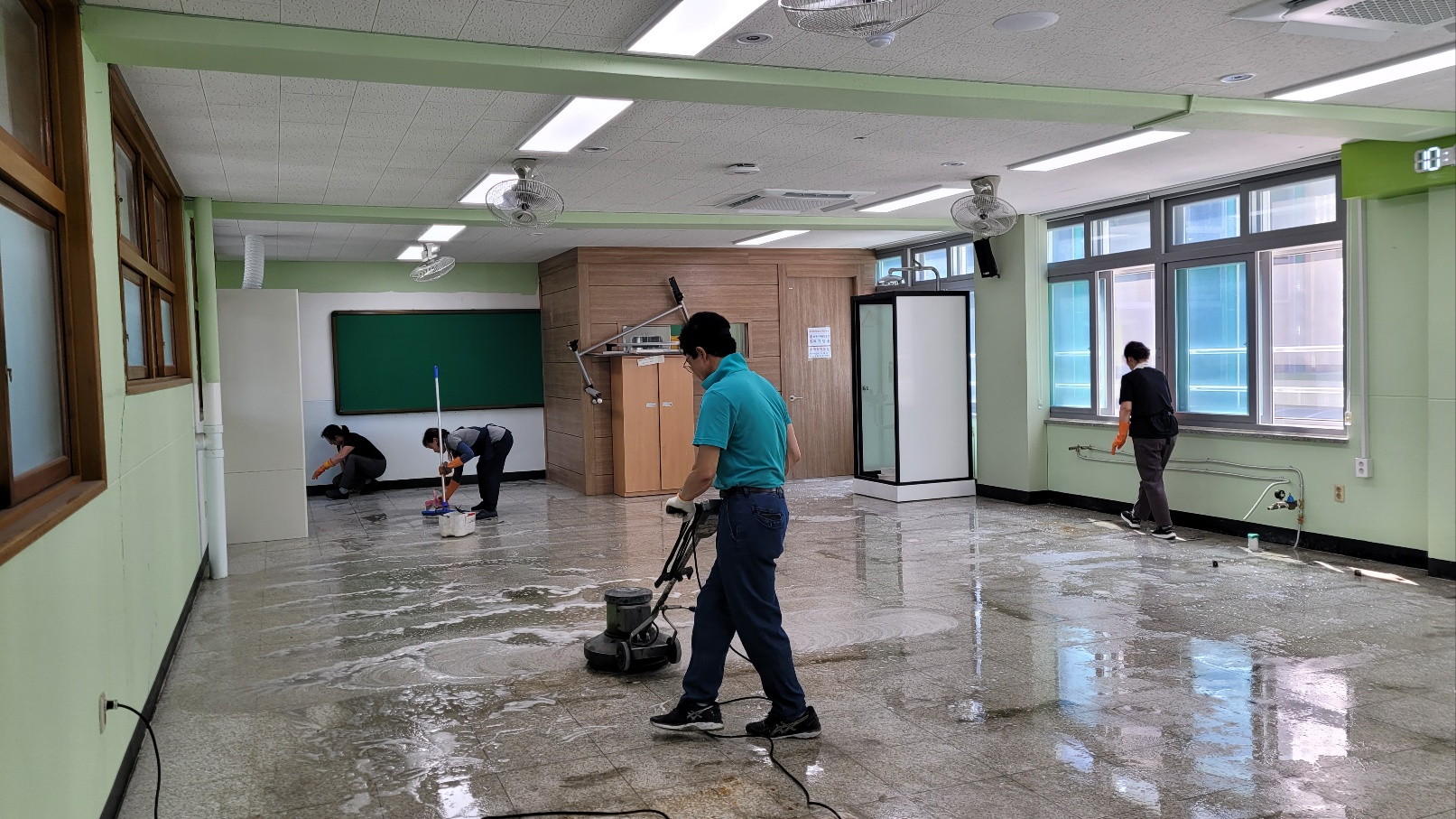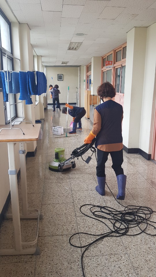 ▶ 깨끗한 밀대 걸래로 2~3회 바닥면을 닦은 후 왁스 코팅을 한다